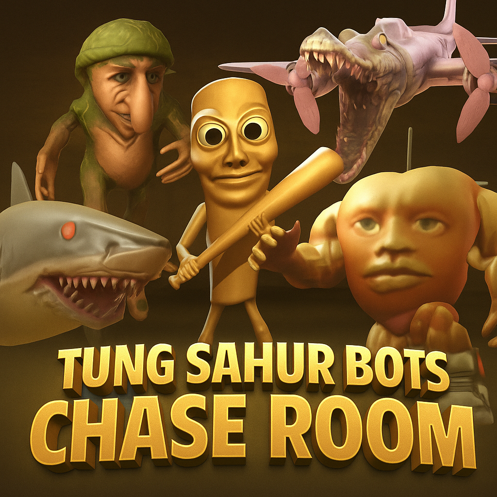 In Tung Sahur Bots Chase Room, you will dodge the relentless pursuit of over 30 unique meme bots. The goal is to escape each room alive, or at least reach the end of the level before the enemies do.